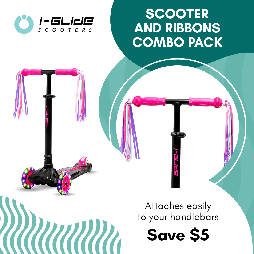 I-GLIDE 3 Wheel Scooter Combo Pack with Ribbons (Black/Pink)